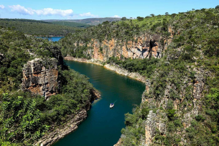 Foto: Guia Melhores Destinos O Lago da Represa de Furnas ganhou fama de “mar de minas” e a grandiosidade de suas águas, com 1440 km² de área, faz mesmo dele um lugar espetacular. Maior atração da região de Capitólio, o lago é cercado por uma linda paisagem formada por cachoeiras e cânions que dão ainda mais beleza ao lugar. Navegar pelas águas do Lago de Furnas é o ponto de partida de quase todo turista que visita Capitólio e vale cada minuto do passeio.